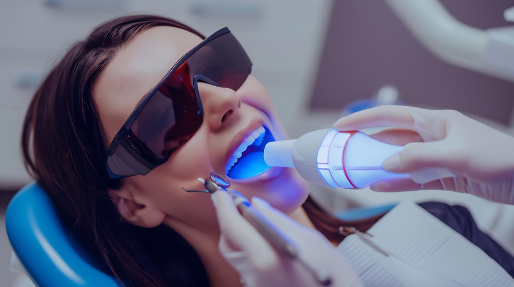 Whitening Application: Professional gel applied and activated (light or laser if needed).